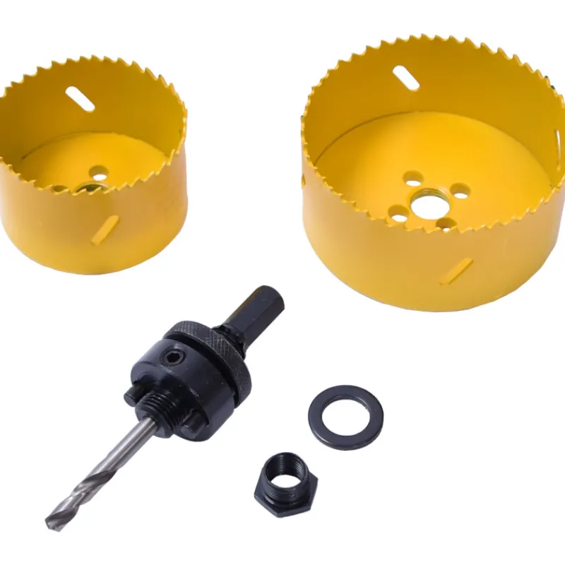 Sisältää 73mm ja 95mm kuppiterät, reikäsahanterä 6mm sekä reikäsahaistukan.