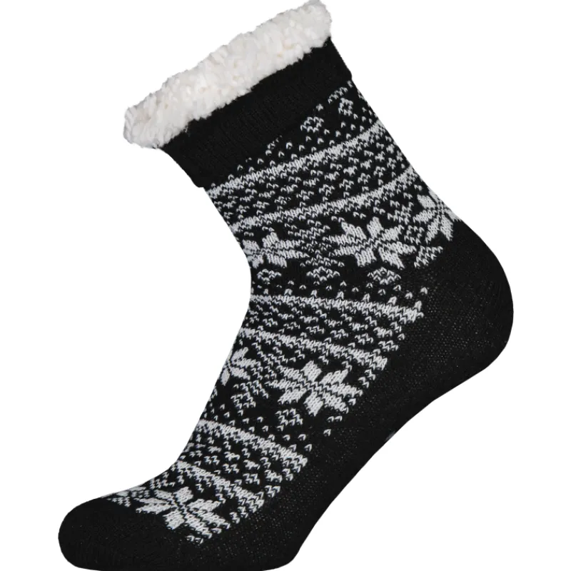 Kuvioiduissa sukissa on pehmeän pörröinen vuori ja pohjissa liukuesteet.