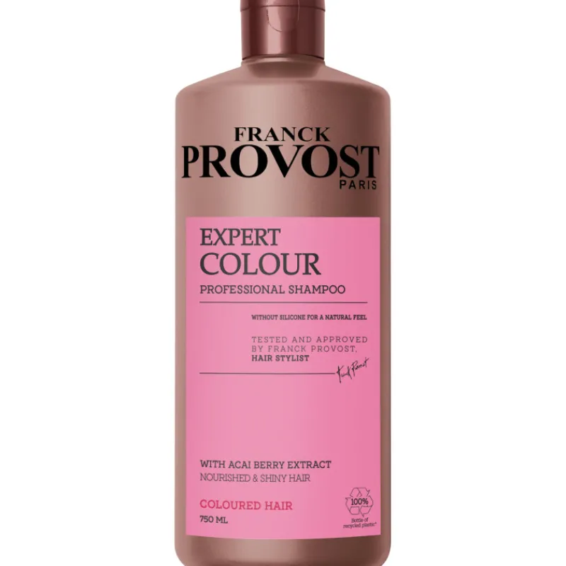 Frank Provost Expert Colour -ammattitason shampoo kotikäyttöön. Sisältää antioksidanttista akai-uutetta ja on kehitetty suojaamaan värjättyjä hiuksia ja antamaan niille kiiltoa. Helpottaa hiusten selvittämistä ja kirkastaa väriä. Akai-marjauute sisältää runsaasti ainesosia, jotka asettuvat hiuksen ympärille, raviten ja suojaten sitä. Pakkauskoko 750 ml.