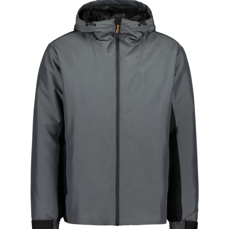 Vetoketjutaskut molemmilla sivuilla sekä säädettävä helma. Kaksivärinen harmaa/musta kuosi oranssilla tehostevärillä. Paljon kokoja, isoin koko 3XL (64/66).