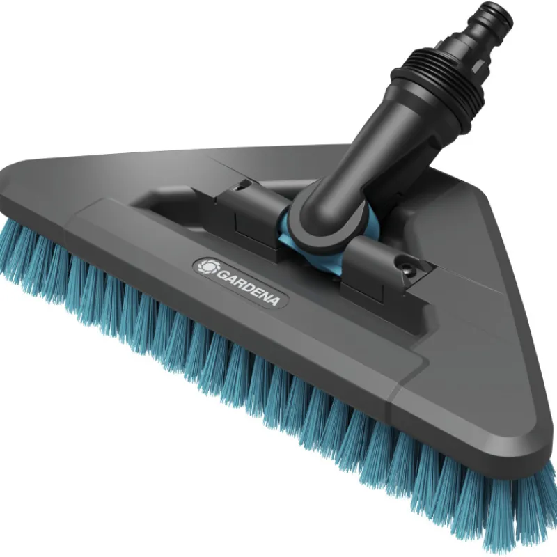 360° kääntyvän kolmion muotoisen harjaspään ja nivelliitoksen ansiosta pesuharjaa voidaan käyttää vaivattomasti, etenkin kulmissa, joihin muilla harjoilla on vaikea päästä käsiksi. Tämä tarkoittaa, että harja mukautuu ihanteellisesti puhdistettavan kohteen mukaan.