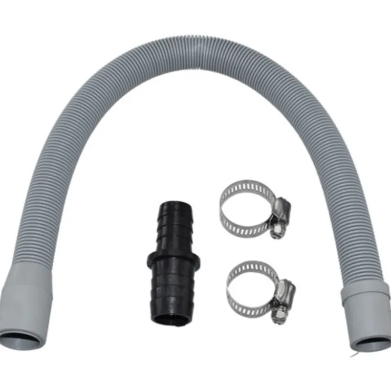 Harju pesukoneen poistoletkun jatkosarja sisältää 0,5 m letkun, kaksi letkunkiristintä ja 19/21 jatkonipan. Letkunkiristimet ovat ruostumatonta terästä.