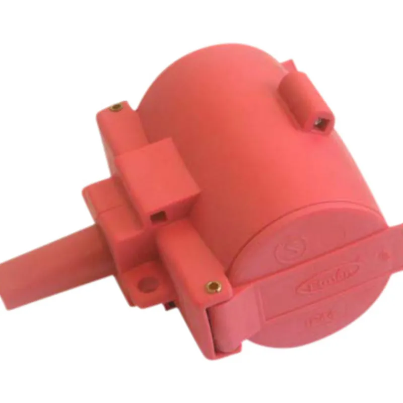Kaksiosainen roiskevesitiivis jatkopistorasia. Suojausluokka IP44. Väri punainen.