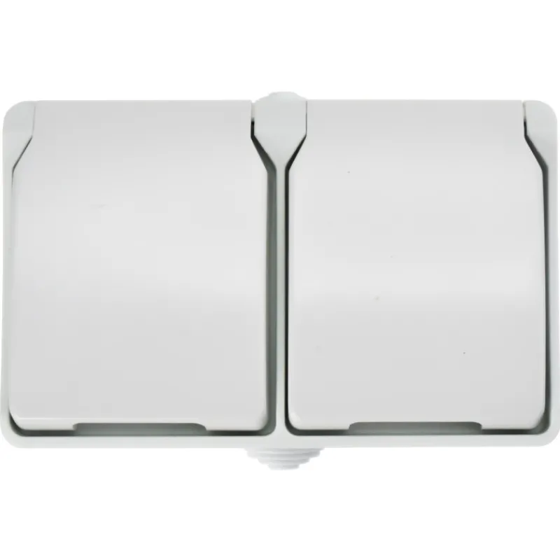 Pinta-asennettava maadoitettu 2-osainen pistorasia. Kotelointiluokka IP44.