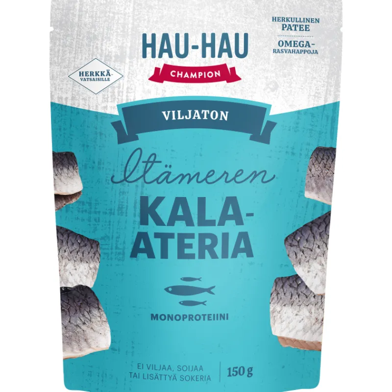 Viljaton Hau-Hau Championin Itämeren kala-ateria on tasapainoinen koiran märkäruoka, joka on suunniteltu erityisesti herkkävatsaisille koirille. Maukas koiran patee sisältää Itämeren kalaa eikä lainkaan viljaa, soijaa tai lisättyä sokeria. Tarjoa herkullinen ateria koiralle sellaisenaan tai Hau-Haun nappuloiden kanssa.