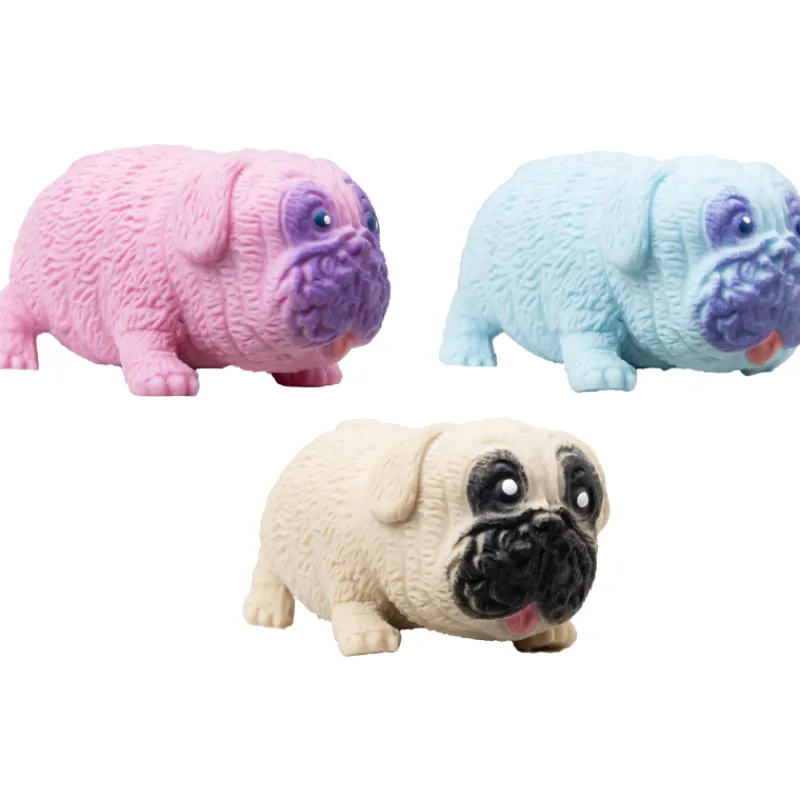 Siisti, hauska ja superjoustava! Vedä Pugablea niin pitkälle kuin pystyt, niin se muuttuu makkarakoiraksi! Työnnä suloinen lemmikki takaisin muotoonsa ja aloita alusta. Saatavilla kolme erilaista.