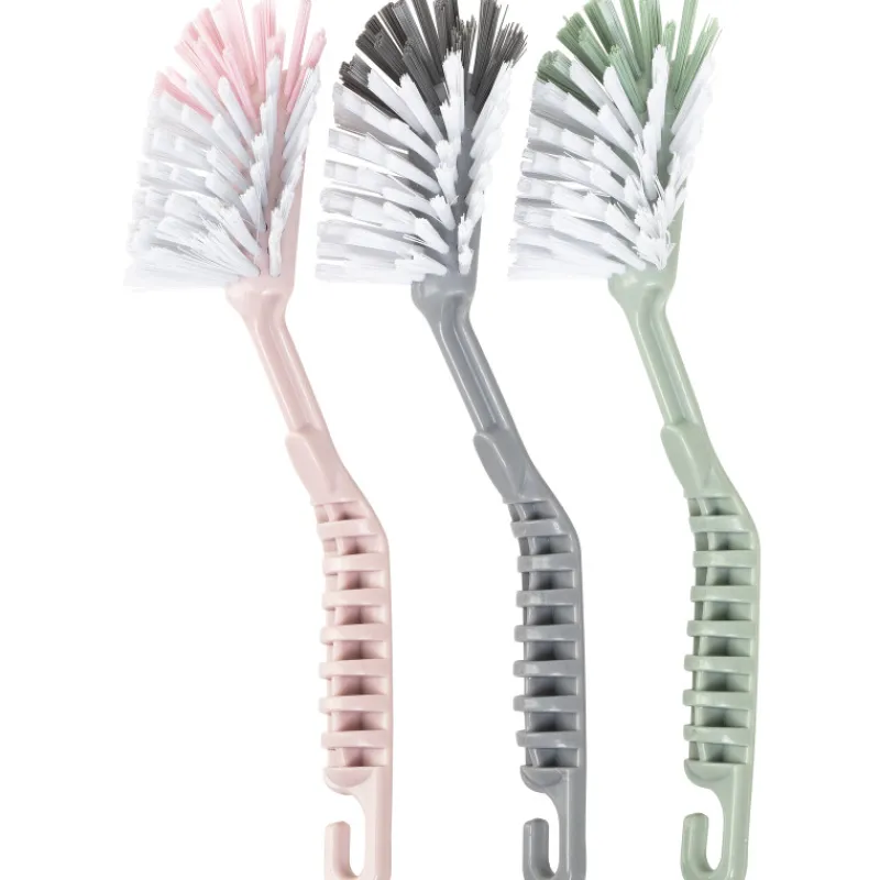 Iisi-tiskiharjasetti sisältää vaaleanpunaisen, vihreän sekä harmaan tiskiharjan. Tiskiharjassa on suorat harjakset.