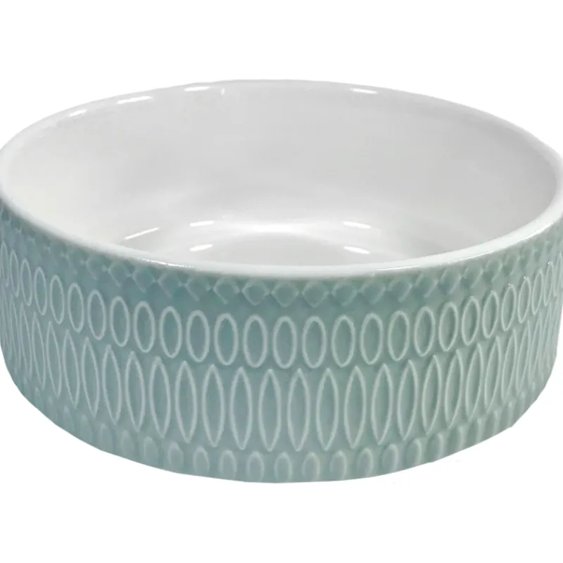 Keraaminen koiran ruokakuppi sopii niin ruokintaan kuin vesikupiksi. Reunaa kiertää kaunis kohokuvio. Kulhon voi pestä astianpesukoneessa.