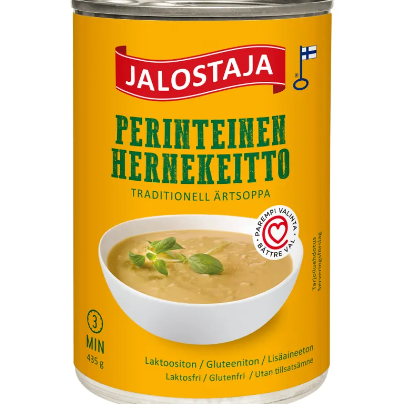 Jalostajan perinteinen hernekeitto on nopeasti valmistuva maistuva arkiruoka. Pidä aina kaapissa muutama purkki hernekeittoa, jottei nälkä yllätä!