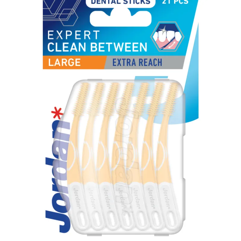 Pitkävartiset ja kaarevat Jordan Clean Between Expert -hammasvälitikut tekevät hammasvälien puhdistamisesta helppoa ja tehokasta. Ne on suunniteltu liukumaan pehmeästi hammasväleissä poistaen ruokaa ja plakkia. Samalla pienet kumiset harjakset hierovat ikeniä ja stimuloivat verenkiertoa jättäen jälkeensä hyvinvoivan ja puhtaan tunteen.