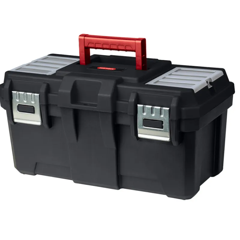 Laadukas työkalupakki, jossa on kaksi metallisalpaa ja kannessa säilytyslokerikko pieniä tavaroita kuten ruuveja ja proppuja varten. Pakin sisällä on työkalukaukalo. Pakin saat lukittua riippulukon avulla. Mitat (L x K x S): 49 x 25 x 26 cm.