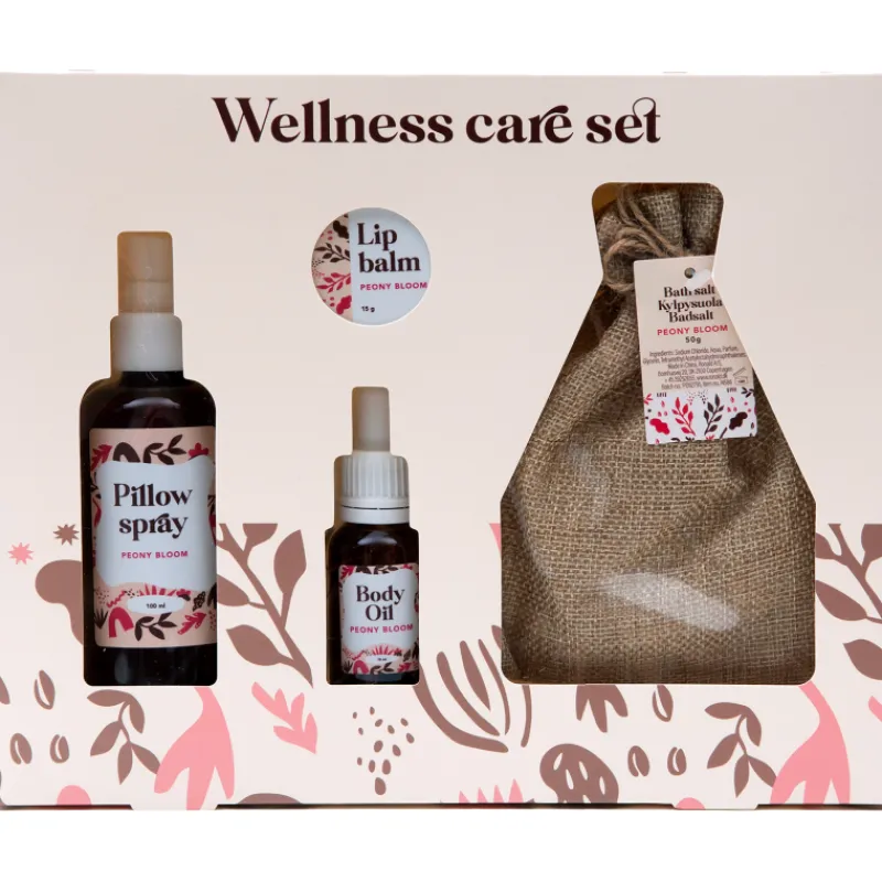 Hyvinvointia eheyttävä lahjapakkaus tuo ihastuttavaa tuoksua ja lempeyttä koko keholle. Pakkauksessa tyynysuihke 100 ml, vartaloöljy 15 ml, huulivoide 15 g ja kylpysuola 50 g. Kaikissa tuotteissa hempeä ja romanttinen pioninkukan tuoksu.