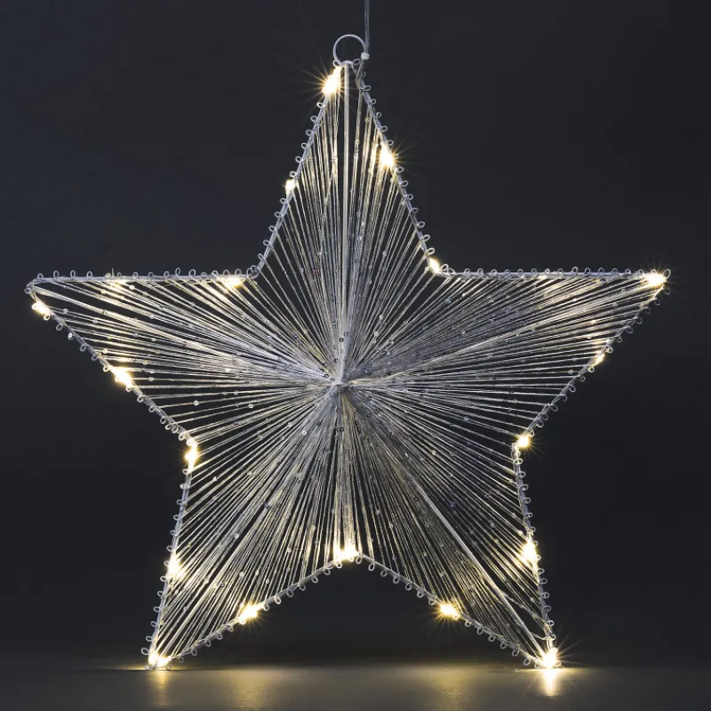 Koristetähdessä tuikkii 20 lämpimän valkoista LED-valoa. Tähden halkaisija on 40 cm. Tähti toimii kolmella AA-paristolla (ei sisälly pakkaukseen). 6 h / 18 h ajastintoiminto. Väri valkoinen.