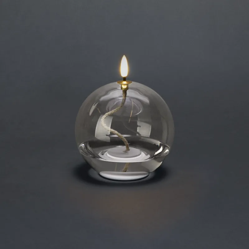 Lasipallo LED-kynttilässä on lämpimän valkoinen LED-valo. Toimii 1 x CR2032-paristolla (ei sis. pakkaukseen). Mitat 10 x 12 cm. ON/OFF- ja ajastintoiminto 8 h / 16 h.
