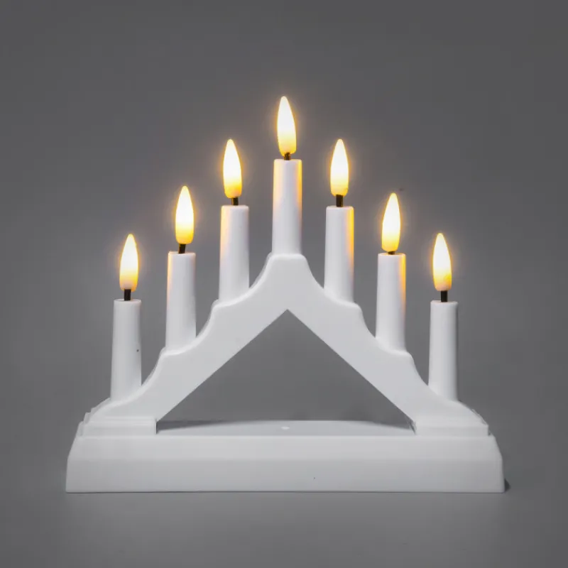 Minikynttelikkö, jossa 7 kynttilää. Valkoinen tai punainen väri (verkkokaupasta tilattaessa väriä ei mahdollista valita, toimitus varastotilanteen mukaan). Toimii 2 x AA paristoilla (paristot ei sisälly pakkaukseen). Vain sisäkäyttöön. Mitat: 15,7 x 3,8 x 14,2 cm.