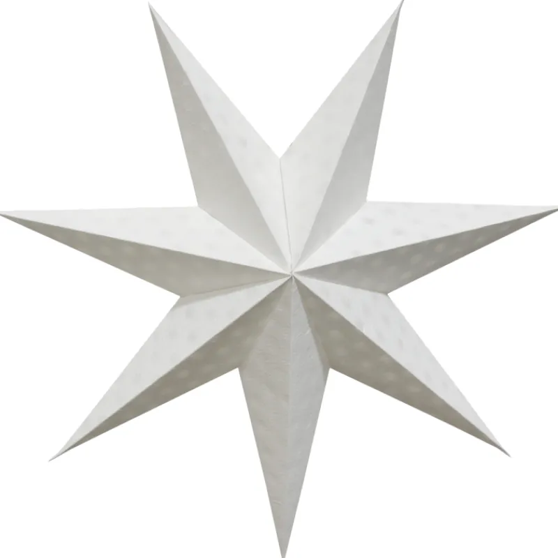 Valkoinen Kotikulta-paperitähti somistaa kotia! Tähden halkaisija on 45 cm. Mukana valaisimen kiinnitysmuovi.