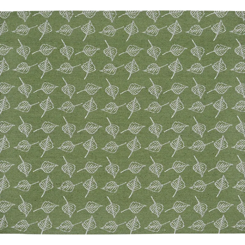 Kotikulta Koivikko -laudeliina on kuvioitu kauniilla koivunlehdillä. Vihreän laudeliinan materiaali on 70 % kierrätettyä puuvillaa, 30 % polyesteriä. Kierrätyspuuvilla on napakka, nopeasti kuivuva ja silittämättä siisti materiaali, joka sopii erinomaisesti saunaan.
