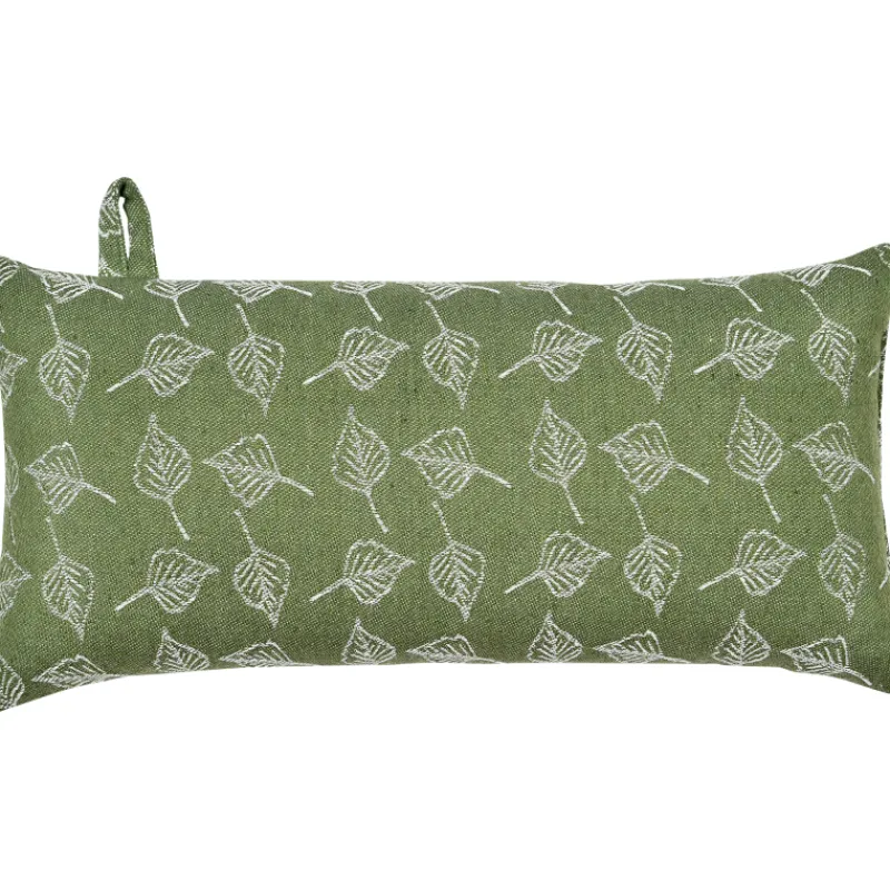 Kotikulta Koivikko -saunatyyny tuo lisämukavuutta rentouttaviin saunahetkiin. Vihreä tyyny on kuvioitu kauniilla koivunlehdillä.