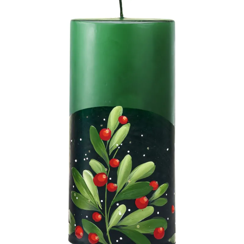 Puolukka-aiheisen kuvan koristama Kotikulta-pöytäkynttilä tuo valoa talveen. Parafiinikynttilän korkeus on noin 15 cm ja paloaika noin 58 tuntia.