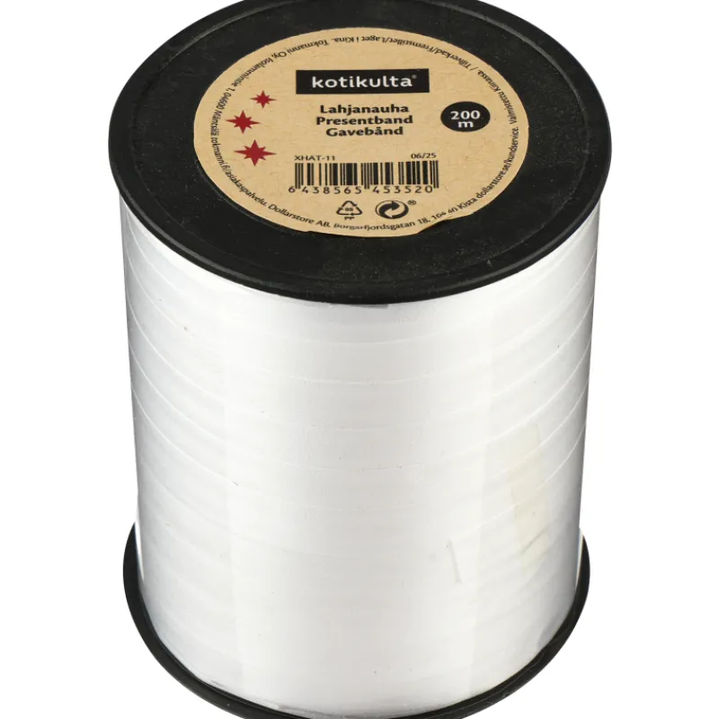 Kotikulta Lahjapaketointi-Lahjanauha 10 Mm X 200 M Valkoinen