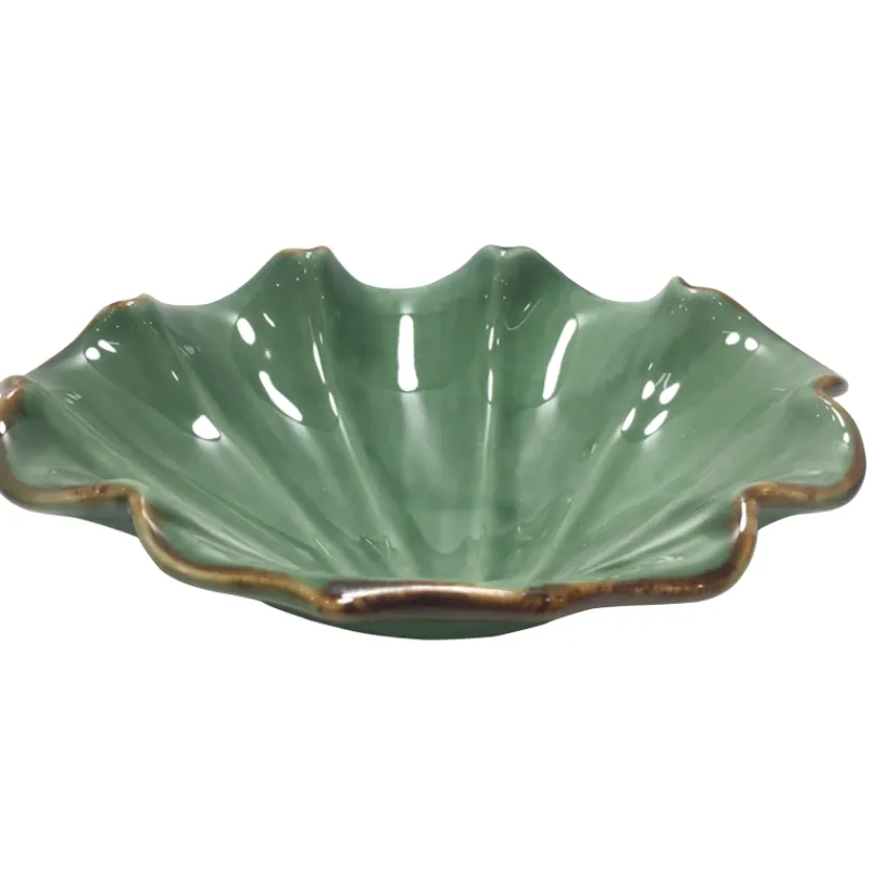 Keraaminen Kotikulta Solna -alunen toimii kauniina alustana esimerkiksi sisustusesineille tai säilytyspaikkana avainten kaltaisille pienille esineille. Vihreässä alusessa on kullanvärinen reunus.