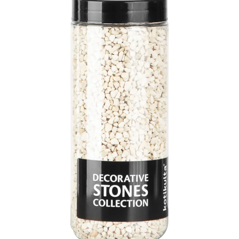 Monikäyttöinen Kotikulta-koristehiekka sopii esimerkiksi kukkaruukkuun kukan somisteeksi, koriste-asetelmiin, askarteluun, jne. Koristehiekkakivien koko on 2,0 – 3,0 mm. Väri kerma. Pakkauskoko 700 g.