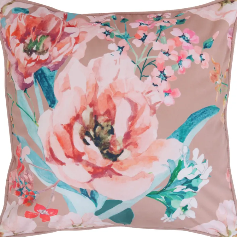 Samettinen Kotikulta Kata -koristetyynynpäällinen hurmaa kauniin maalauksellisella kukkakuosillaan. Tyynynpäällisen koko on 45 x 45 cm ja materiaali 100 % polyesteria.