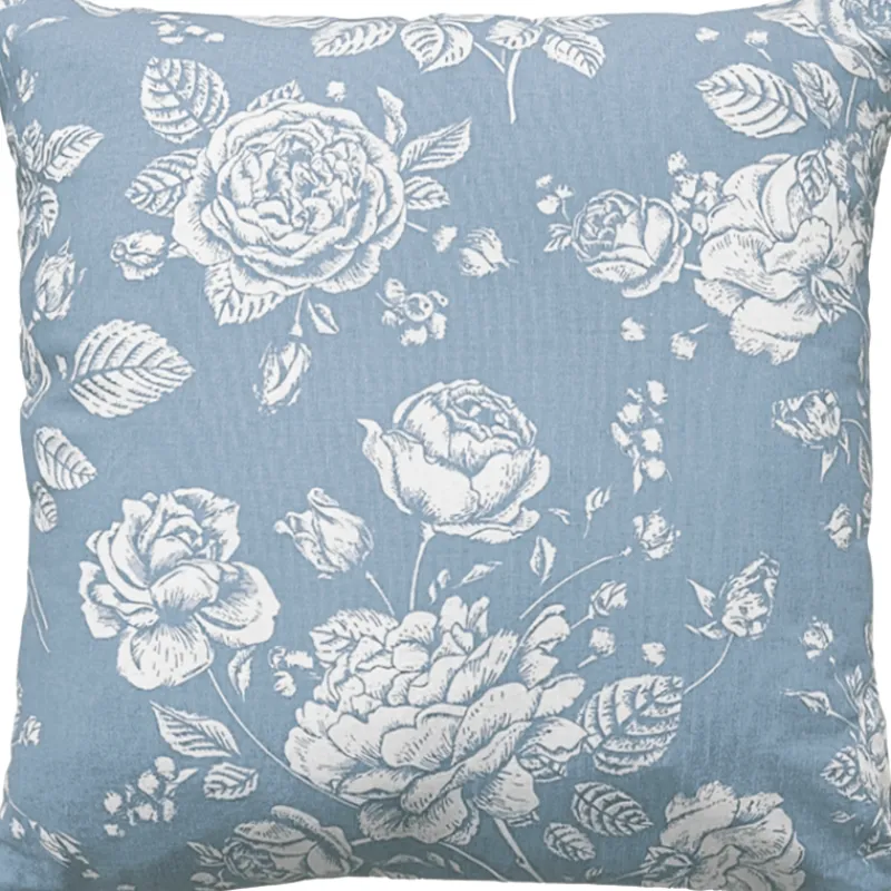 Kotikulta Soma -koristetyynynpäällinen on kuvioitu kauniilla vaaleilla kukilla. Sinisen tyynynpäällisen koko on 50 x 50 cm. Materiaali on 70 % puuvillaa ja 30 % polyesteria.