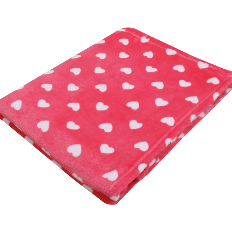 Kotikulta Hertta -torkkupeite on kuvitettu suloisesti sydämillä. Pinkki peitto on valmistettu 100 % polyesterista, ja sen koko on 130 x 160 cm.