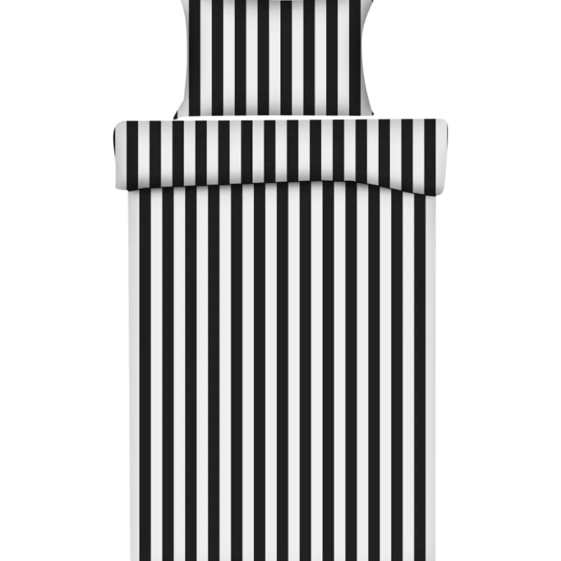 Kotikulta-pussilakanasetti pirteällä pystyraitakuosilla. Settiin kuuluu pussilakana koossa 150 x 210 cm ja tyynyliina koossa 50 x 60 cm. Pussilakanassa on osittain avoin pääty ja yläreunassa käsiaukot helpottamaan peiton pujottamista. Materiaali on 100 % puuvillaa.