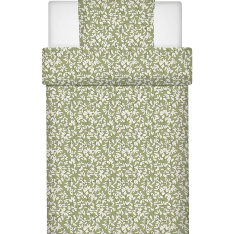 Puuvillasatiininen Kotikulta Verso -pussilakanasetti tuo makuuhuoneen sisustukseen raikkautta kauniilla kasvikuosillaan. Settiin sisältyy pussilakana (150 x 210 cm) ja tyynyliina (50 x 60 cm). Materiaali on 100 % puuvillaa.
