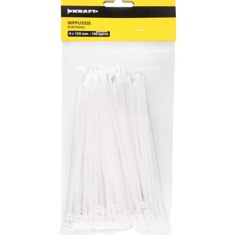 Kraft-nippuside soveltuu hyvin nopeaan kiinnitykseen ja niputtamiseen erilaisissa tilanteissa. Nippuside sopii käytettäväksi usein sähköjohtojen niputtamisen lisäksi kaapelien, putkien ja letkujen kiinnittämiseen. Koko 4 x 150 mm, väri valkoinen. Pakkauksessa 100 kpl. Lämpötilan kestävyys min. / max.: -40 – 85 °C.