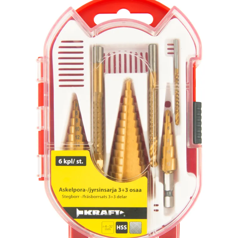 Kraft Sähkötyökalujen Tarvikkeet-Askelpora/porajyrsinsarja 3+3 Osainen