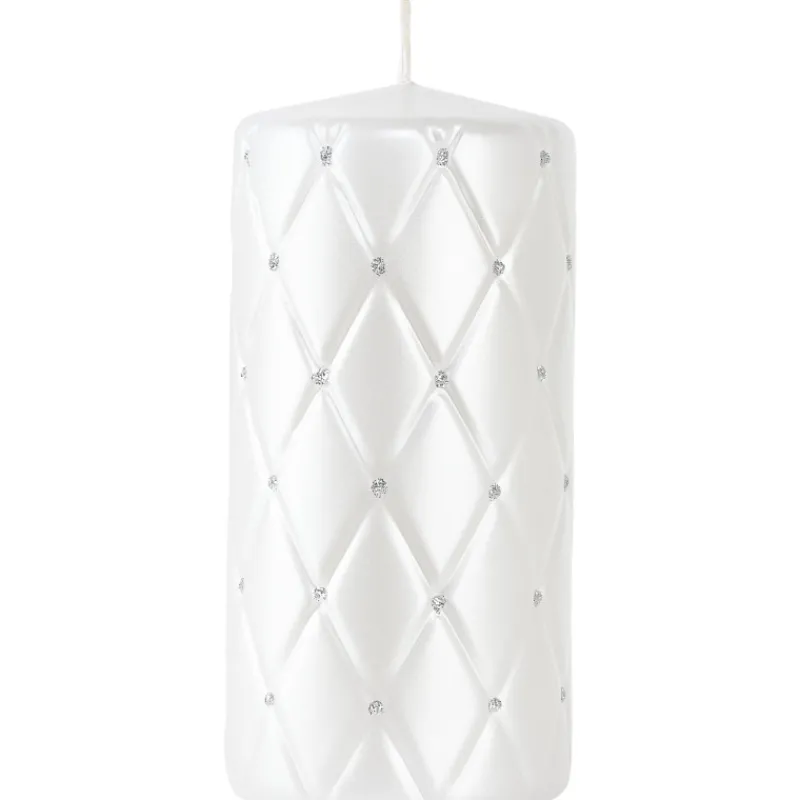 Näyttävä koristekynttilä tuo ylellistä tunnelmaa kotiin. Valkoisessa parafiinikynttilässä on kaunis timanttikuvioitu pinta. Koko 15 x 7 cm.
