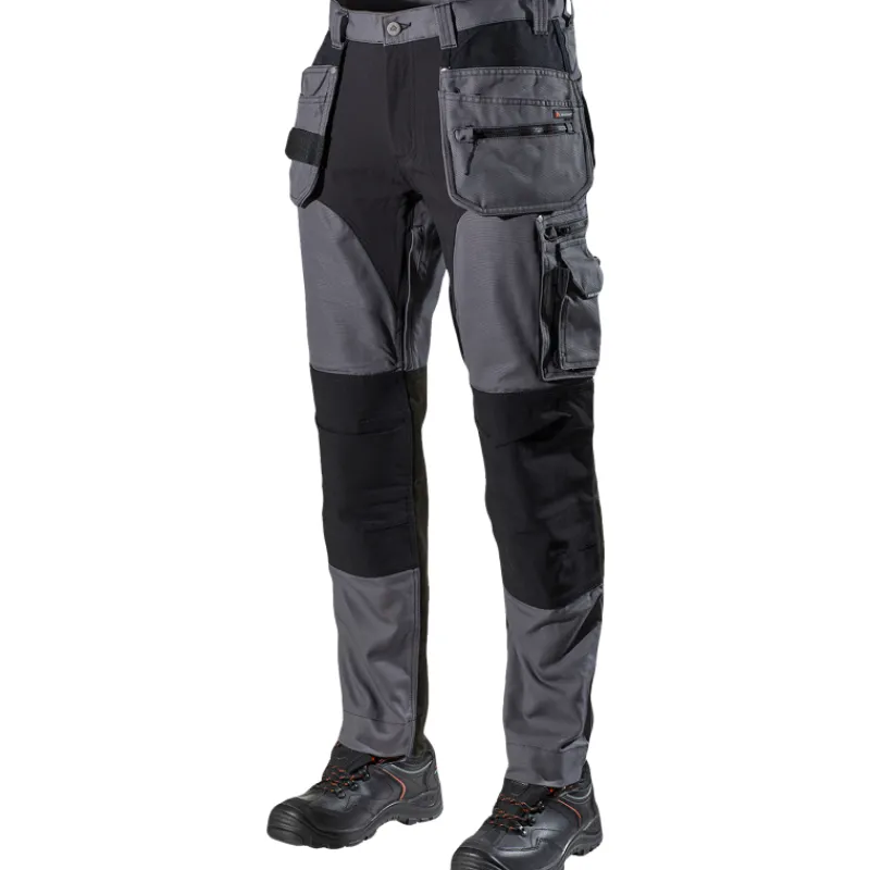 Malli sopii erityisen hyvin palvelu-, logistiikka-, varasto- ja teollisuustöihin, joissa joustavuudesta tai liikkuvuudesta ei haluta tinkiä. Taskut ja pitimet: Kaksi etutaskua. Upotetut kaitaletaskut takana. Oikeassa reisitaskussa pelkistetty mittatasku ja kynätaskuja. Vetoketjullinen vasen reisitasku ja ulkopuolinen puhelintasku magneettilukolla.