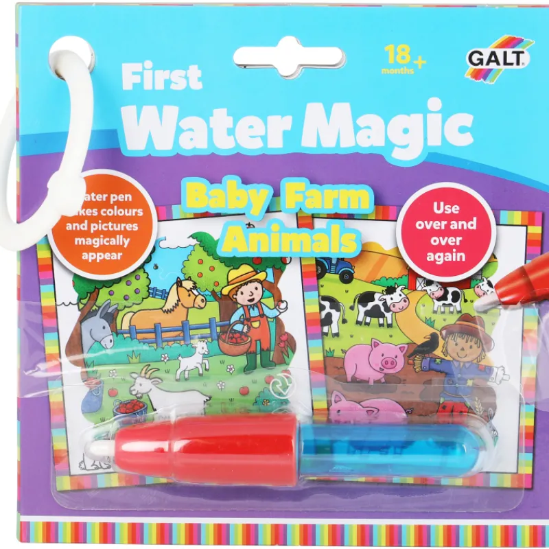 Värityskirja, jota voi värittää uudelleen ja uudelleen. Sopii myös nuoremmille värittäjille. Sivut on kiinnitetty toisiinsa tukevalla lenkillä ja vesikynä on suurempi kuin tavallisissa lehtiöissä. Kuvissa maatilan eläimiä. Täytä kynä vedellä ja väritä kuvat esiin. Kun sivu kuivuu, kuva katoaa ja sen voi värittää taas uudestaan esiin. Täydellinen mukaan matkalle!