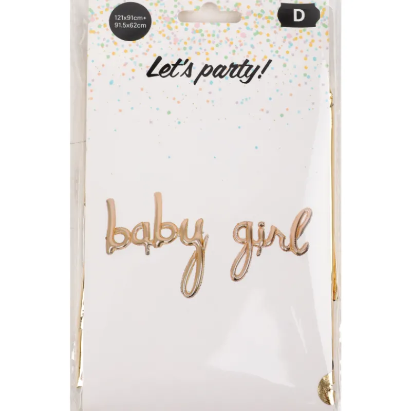 Kullanvärinen Baby Girl -foliopallobanneri on näyttävä koriste baby shower -juhliin! Ilmalla täytettävän bannerin koko on 121 x 91 cm + 91,5 x 62 cm.