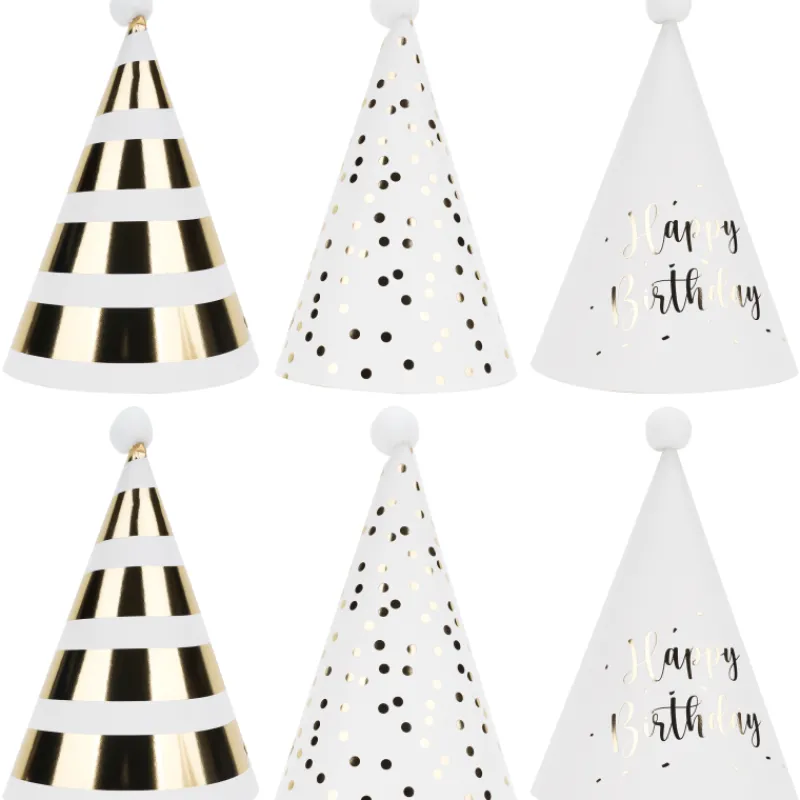 Let’s Party Juhlakattaus-Partyhattu 6 Kpl Valkoinen/kulta