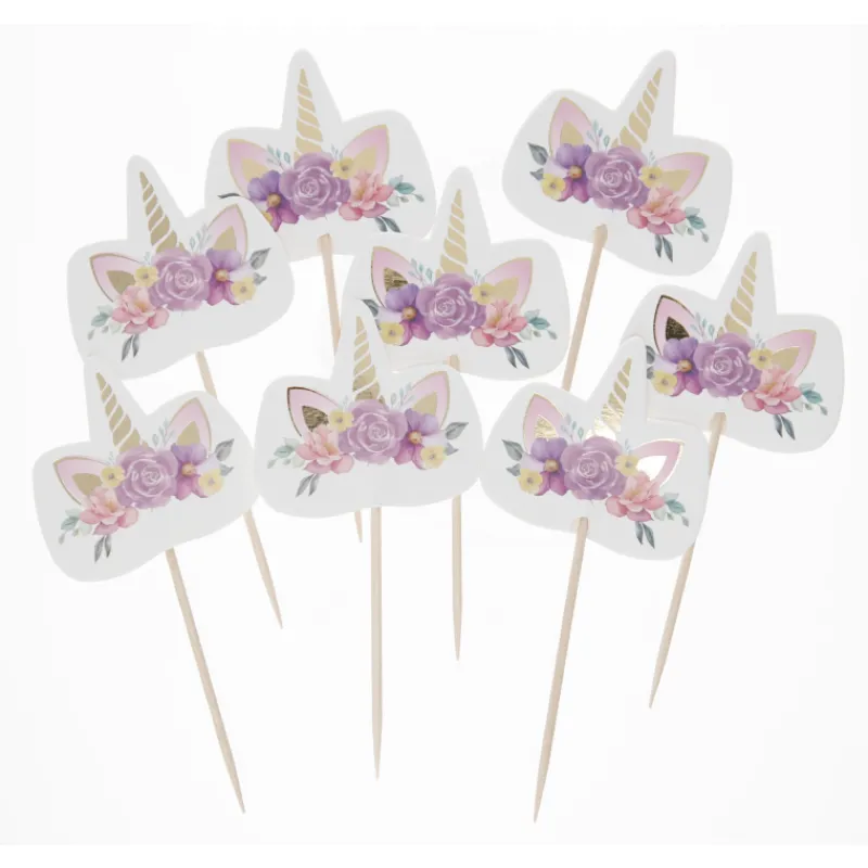 Taianomaiset Let’s Party Yksisarvinen -partytikut juhlakattaukseen. Pakkaus sisältää kahdeksan tikkua.
