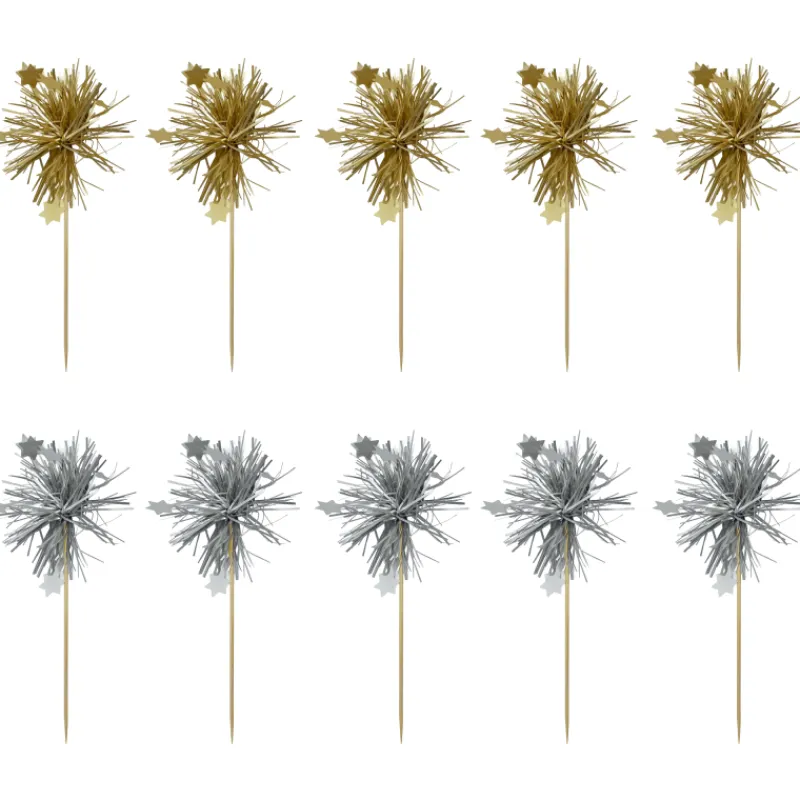 Let’s Party -kakkukoristeet kruunaavat uudenvuoden juhlien tarjoilut. Pakkaus sisältää 5 kullanväristä koristetta ja 5 hopeanväristä koristetta.