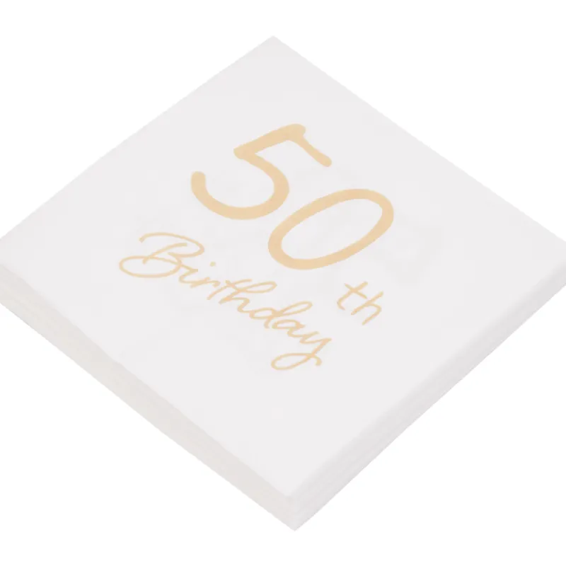 Juhlista syntymäpäivää teemaan sopivalla kattauksella! Let’s Party -lautasliinoissa lukee ”50th Birthday”. Lautasliinojen koko on 33 x 33 cm.
