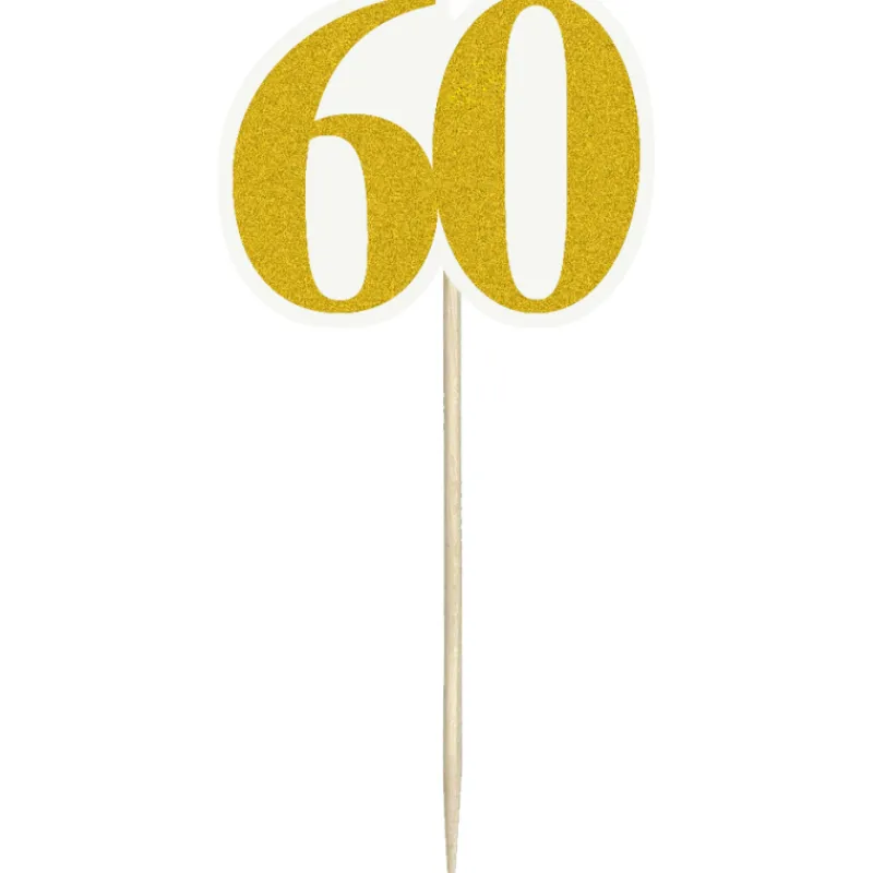 Let’s Party -tikut viimeistelevät juhlavasti 60-vuotissyntymäpäivien tarjoilut. Pakkaus sisältää 10 tikkua kullanvärisellä numerokoristeella.
