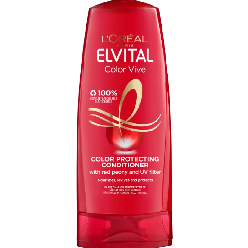 L’Oréal Elvital Color-Vive hoitoaine värjätyille ja raidoitetuille hiuksille. Kauniin hiusvärin salaisuus! L’Oreal Elvital Color-Vive hoitoaine sisältää UV-suojan ja on erityisesti kehitetty värjätyille ja raidoitetuille hiuksille. Color-Seal Elixir -ainesosa ja Nutri-concentrate-tiivistettä sisältävä hoitoaine auttavat suojaamaan väriä haalistumista vastaan ja säilyttämään sen intensiivisyyden sekä pidentämään hiusvärin kiiltoa. Silottaa hiuksen pintaa ja selvittää hiukset ilman, että ne latistuvat. Pakkauskoko 200 ml.