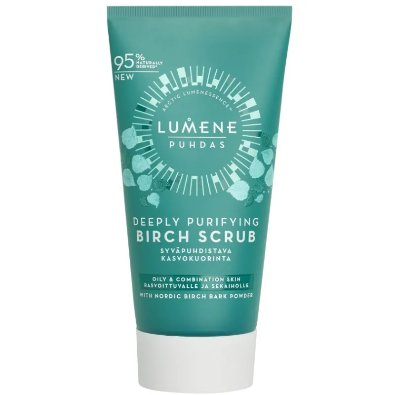 Hellävarainen Lumene Puhdas -kasvokuorinta hyödyntää koivun kaarnaa luonnollisena kuorinta-aineena. Se syväpuhdistaa ihoa ja häivyttää ihohuokosten näkymistä. Iho jää raikkaan ja mattapintaisen näköiseksi.