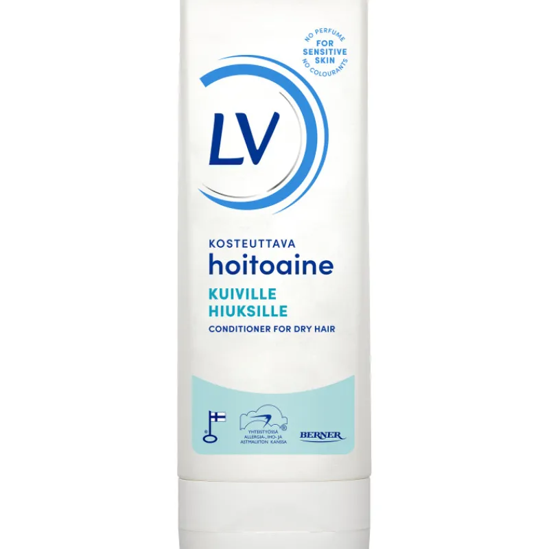 LV hoitoaine kuiville hiuksille auttaa kosteuttaa hiuksia tehokkaasti tehden niistä helpommin käsiteltävät, eloisat ja kiiltävät. Koostumus jättää hiukset sileän ja pehmeän tuntuisiksi.