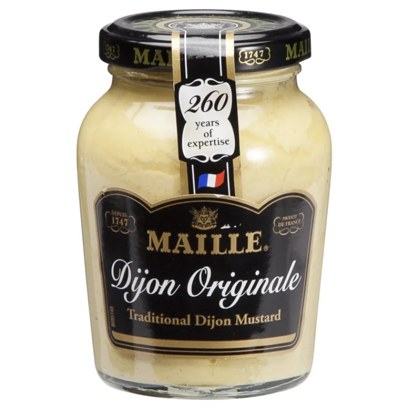 Dijoninsinappi kruunaa hienostuneen makueläyksen ja sopii mainiosti mm. erilaisten liharuokien kaveriksi, kastikkeisiin ja salaatteihin. Maille Dijon -sinappi valmistetaan hienoksi jauhetuista Brassica juncea -sinapinsiemenistä. Sinappi on pakattu kauniiseen lasipurkkiin, jonka voi laittaa sellaisenaan tarjolle myös juhlapöytään.