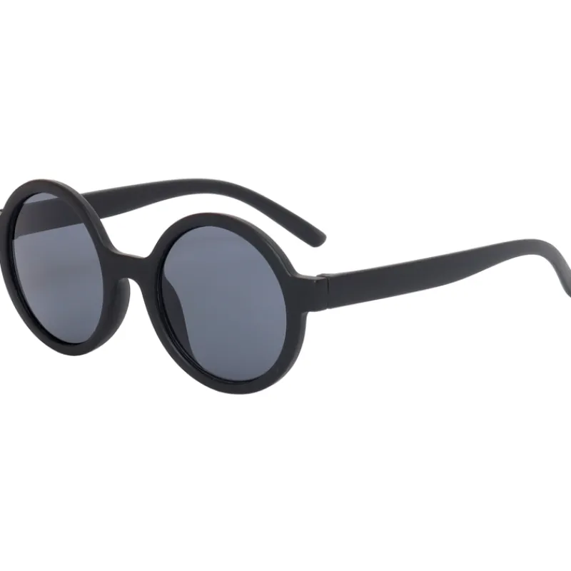 Klassisen pyöreät mustat aurinkolasit lapsille. Aurinkolaseissa on muovisangat ja savunväriset polykarbonaattilinssit.