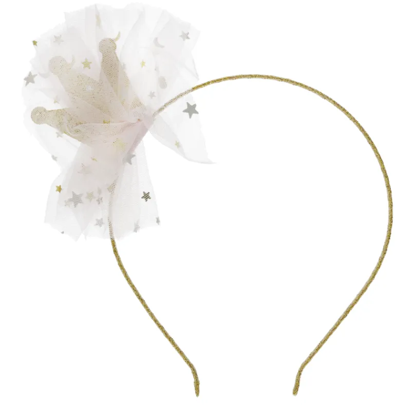 Miny lasten hiuspanta kruunulla ja tyllillä kruunaa ihastuttavasti perheen pienen kuninkaallisen asun. Saatavilla kolmea eri väriä.