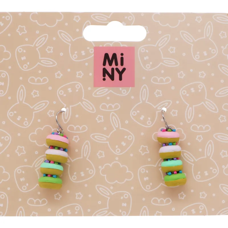 Hauskoissa donitsikorvakoruissa on monta donitsia päällekkäin.