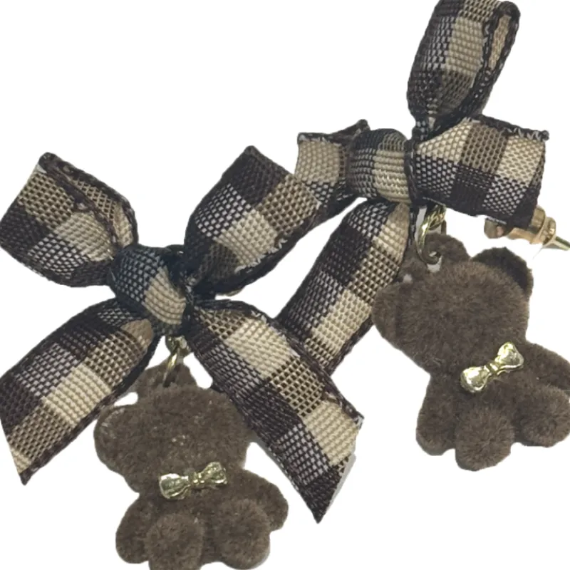 Suloiset teddynallekorvakorut herättävät ihastusta ja keräävät katseet. Nalleilla kullanvärinen rusetti kaulassa.